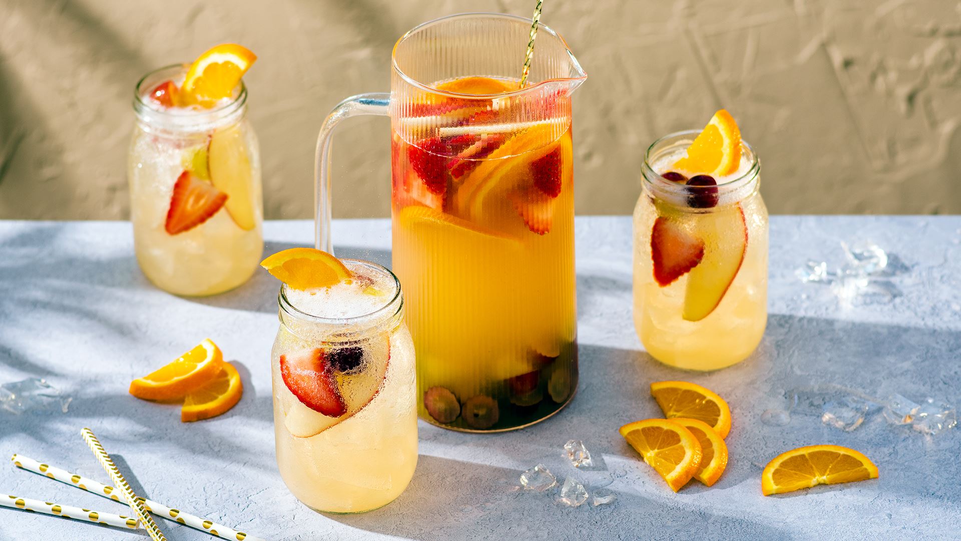 Este cóctel es perfecto para sorprender a tus invitados en una tarde soleada. En una coctelera, mezcla trozos de frutas frescas (como fresas, arándanos y rodajas de naranja) con un chorrito de jarabe de agave, jugo de limón y un toque de ron blanco (opcional). Agita bien y vierte la mezcla en copas con hielo. Completa con agua con gas y decora con una rodaja de limón o una ramita de menta. ¡Salud!