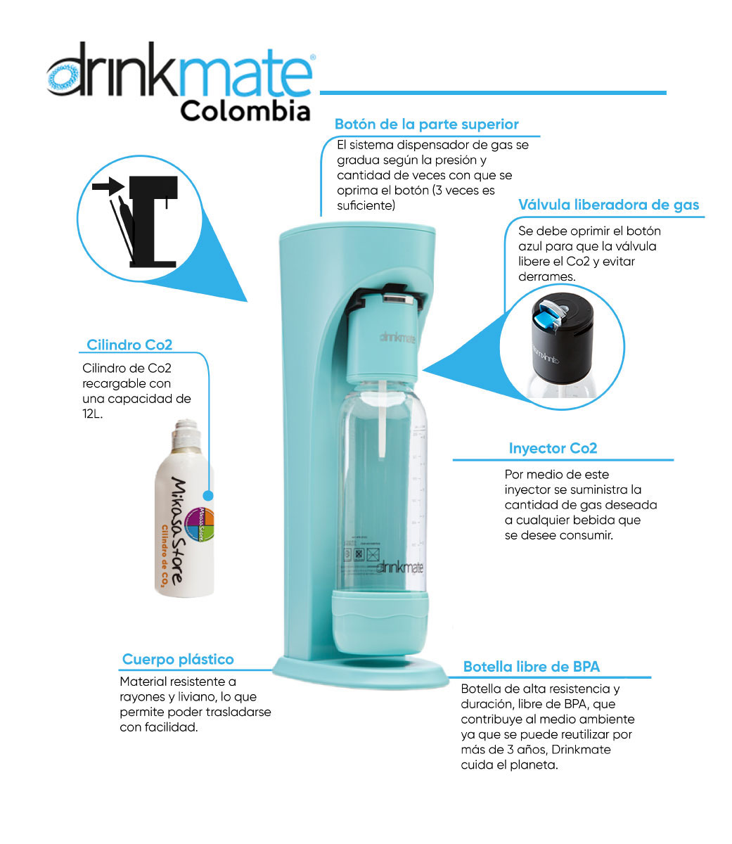Kit para hacer agua con gas y bebidas gaseosa en casa DrinkMate.